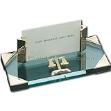 The lawyer business card holder features a gold plated Scales of Justice emblem which is mounted to the glass base, a symbol found on many pieces of law office decor. The legal desktop business card holder is a great gift for any lawyer or attorney adding ornamentation with a professional, dignified tone.